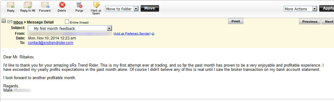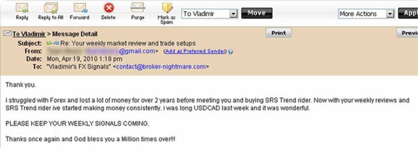 The sRs Trend Rider was first designed, developed and introduced in the year 2009 after Vladimir had seen the success of automated forex trading. He saw it very clear that spending hours in front of the charts did not provide positive results. He and his team of developers started their research and built a system that overpassed all the others in quality and efficiency.