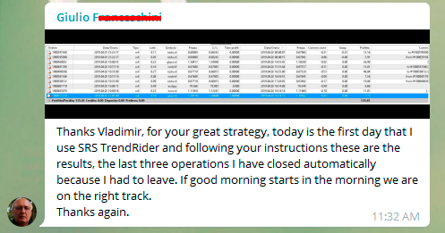 Working with SRS Trend Rider 2.0 (the system automatically records all the results so you can always check the real efficiency of the strategy) Vladimir took into account his followers’ suggestions, requests, and recommendations by adjusting the solution to meet the demands of the traders.