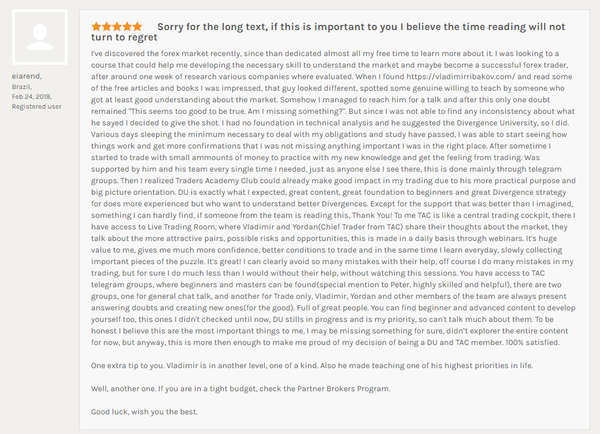 Vladimir Ribakov has been trading for over 14 years, he is a legendary mentor with thousands of students all over the world. He used to trade for brokerages and hedge funds, but later decided to share his knowledge and experience with other traders who needed guidance